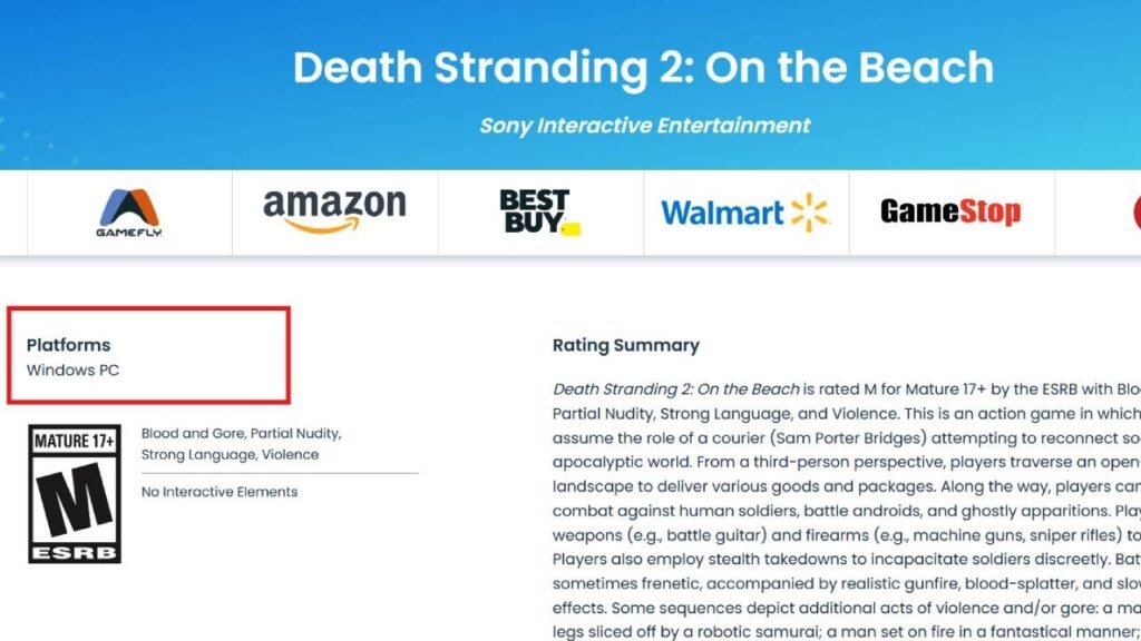 Apa pasal? Karena tidak perlu menunggu selama seri pertamanya, Death Stranding 2: On the Beach versi PC tiba-tiba menemukan jalannya ke badan rating umur – ESRB. Ia mendapatkan rating umur “Mature – 17+” karena ragam konten yang ia usung.