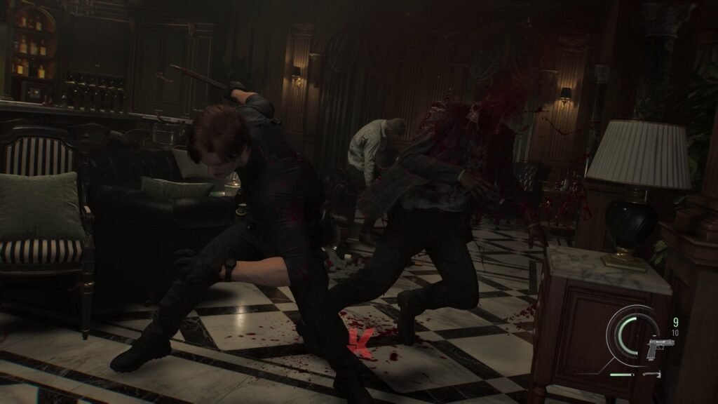 Salah satu alasan mengapa level gore ini akan hadir jauh lebih banyak di sisi Leon yang kini sudah dilengkapi dengan kapak kecil yang tidak sulit memotong bagian-bagian tubuh zombie adalah karena ia diracik sebagai ekspresi rasa frustrasi Leon. Capcom ingin membuat brutalitas ini sebagai wakil tidak hanya perjuangan interal Leon saja, tetapi rasa lelahnya karena sudah “terjebak” dengan monster-monster biohazard ini begitu lama.