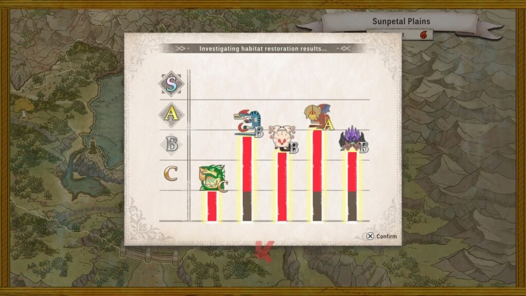 Tidak sampai di sana saja, Anda juga punya kebebasan untuk membebaskan telur-telur yang sudah Anda tetaskan ini ke alam liar. Didukung dengan sebuah grafis yang mudah dibaca, jumlah monster yang Anda lepaskan ke alam liar dinarasikan akan mempengaruhi eksosistem di wilayah yang terdampak. Ada beberapa efek yang bisa muncul – dari potensi untuk menemukan varian monster yang lebih kuat, menemukan telur yang berisikan mutasi ekstra dengan jenis skill yang berbeda, hingga menemukan monster-monster yang langka tiba-tiba kembali “umum”.