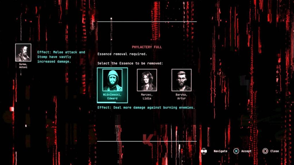 Seperti yang bisa diprediksi, akan ada titik dimana keterbatasan 3 slot yang dimiliki oleh Phylactery Anda memaksa Anda untuk memilih jiwa mana yang ikut dan mana jiwa yang akan dihapus secara permanen. Begitu Anda sudah memilih, tidak ada opsi menggantinya sampai Anda bertemu jiwa yang baru. Untungnya, alih-alih disembunyikan atau misterius, game ini akan secara eksplisit menerangkan efek dari masing-masing jiwa yang ada sehingga Anda bisa bijak memilih berdasarkan informasi tersebut.