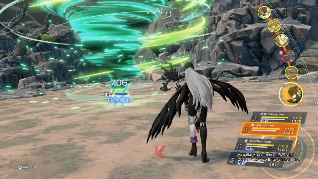 Hampir sebagian besar perjalanan Anda juga akan berujung dilayani oleh karakter tamu yang secara konsisten menemani sesuai dengan garis cerita yang berlangsung. Jadi alih-alih bertarung dengan 3 anggota party, Anda bisa jadi bertarung dengan 4-5 anggota. Walaupun sebagian besar Digimon tamu ini akan menyerang secara otomatis, Aegiomon yang notabene punya peran penting dalam cerita akan dihitung sebagai unit yang bisa Anda perintah secara manual. Sang karakter utama alias Agent juga punya serangan spesial yang bisa mempengaruhi performa tim, dari buff sampai healing.