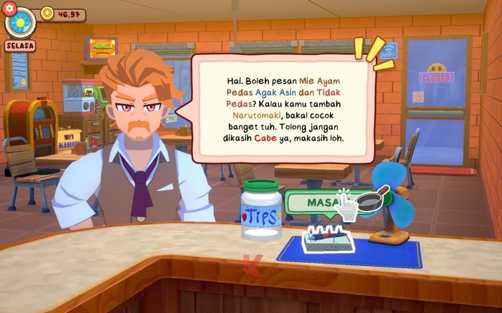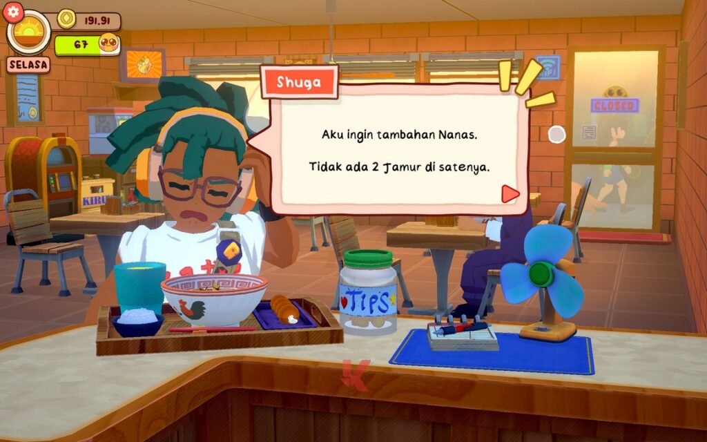 Dunia yang ditawarkan oleh game yang satu ini memang fiksi, tidak ada yang bisa menyangkal hal tersebut. Namun di sisi lain, setidaknya sebagai gamer Indonesia yang hidupnya tidak bisa lepas dari bakso yang notabene jadi comfort food kita, desain yang ditawarkan Gambir Studio juga bisa jadi pedang bermata dua untuk kelemahan yang tidak signifikan, namun pantas untuk dibicarakann ini. Bahwa ia membuat banyak pelanggan restoran Anda hadir bak “monster”.