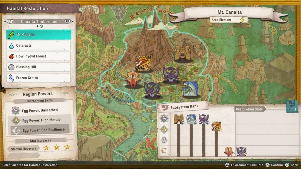 Monster Hunter Stories 3 memperkenalkan mekanik yang disebut sebagai Habitat Restoration. Bahwa alih-alih Anda simpan tanpa banyak peran di library monster Anda, Anda kini bisa melepaskan monster-monster yang ada ke habitat asli mereka masing-masing. Dengan semakin banyak monster sejenis yang Anda lepaskan ke region dimaksud, ia akan mengalami kenaikan ranking yang nantinya akan mempengaruhi kualitas telur yang bisa Anda dapatkan dari setiap sarang yang ada. Semakin tinggi kualitas telur monster yang Anda dapatkan, semakin potensial pula sang monster yang diretas darinya.