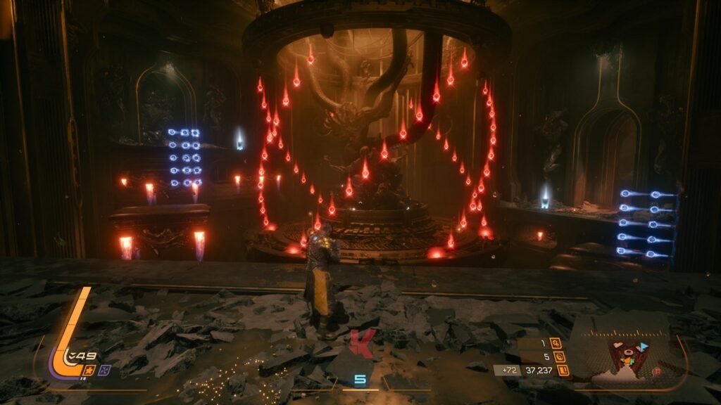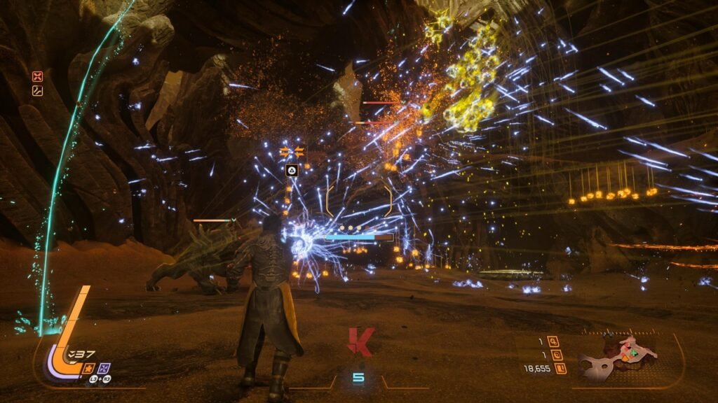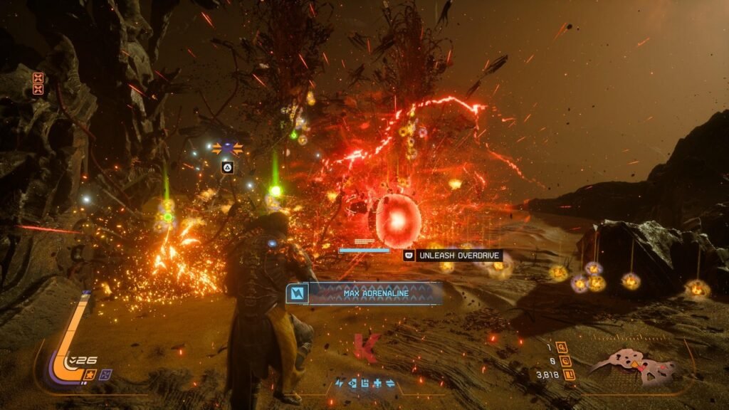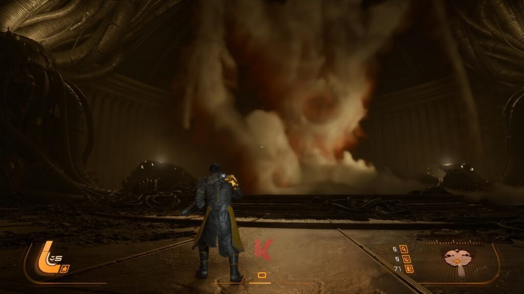 Jika kita bicara hanya sekadar dari sisi pondasi gameplay saja, maka jelas bahwa Housemarque membangun SAROS dari DNA yang sudah tersedia di Returnal lebih dulu. SAROS tetaplah sebuah game action third person shooter yang meleburkan konsep bullet-hell dan rogue-like di saat yang sama. Maka perjalanan dari awal hingga akhir akan diisi dengan pertempuran yang melibatkan begitu banyak muntahan serangan proyektil di layar dengan dunia yang akan senantiasa berubah setiap kali tewas atau kembali ke hub yang disebut sebagai “The Passage”. Dunia yang ditawarkan oleh game ini juga bisa ditelusuri langsung dari titik fast-travel yang terbuka atau dinikmati sebagai satu level yang saling terhubung satu sama lain.