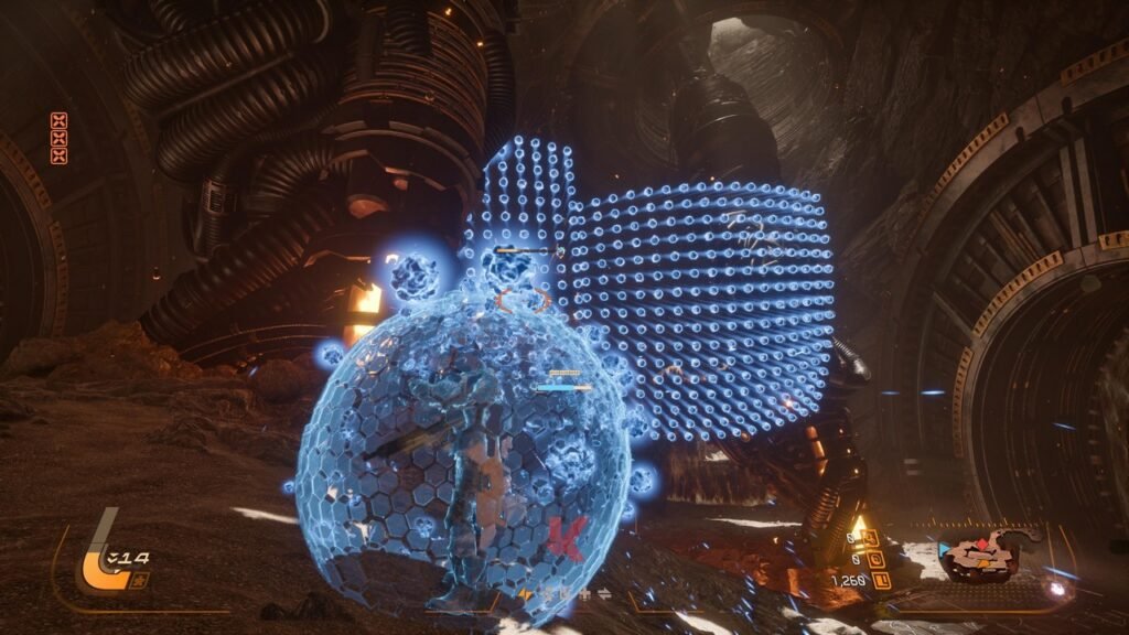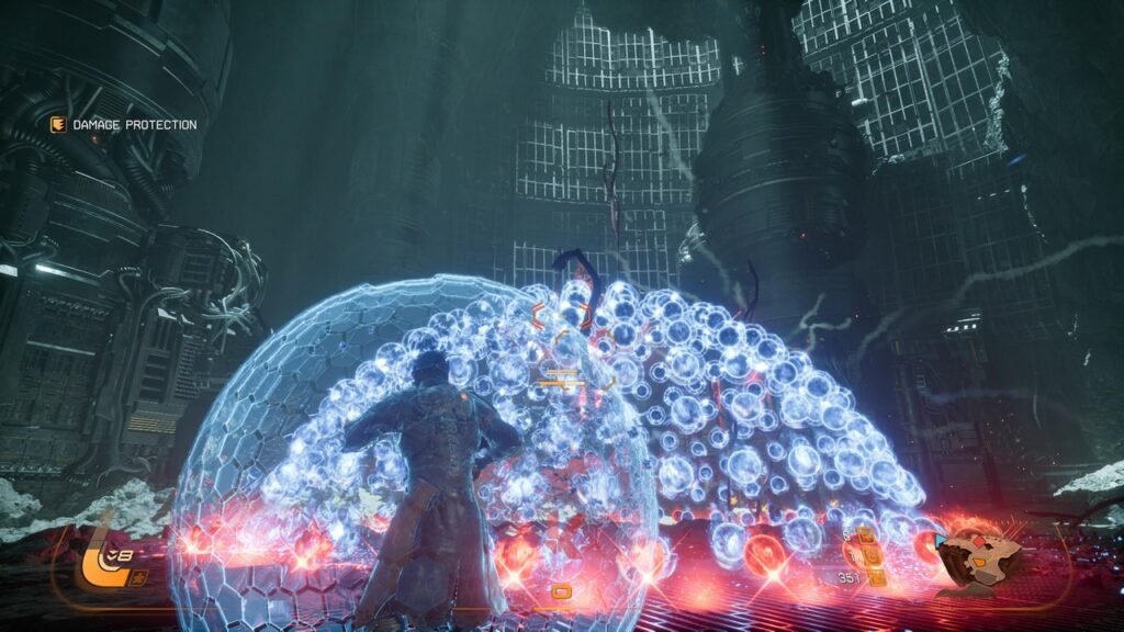 Kuncinya terletak pada satu kata – Shield. Tidak seperti RETURNAL dimana satu-satunya langkah defensif yang bisa Anda lakukan adalah melakukan dash saat bertemu dengan muntahan serangan proyektil yang mendekati Anda, SAROS membekali Arjun dengan sebuah perisai berwarna biru yang bisa Anda picu menggunakan satu tombol secara real-time. Yang membuat SAROS menarik adalah fakta bahwa perisai energi ini tidak semata-mata digunakan untuk kepentingan defensif semata.