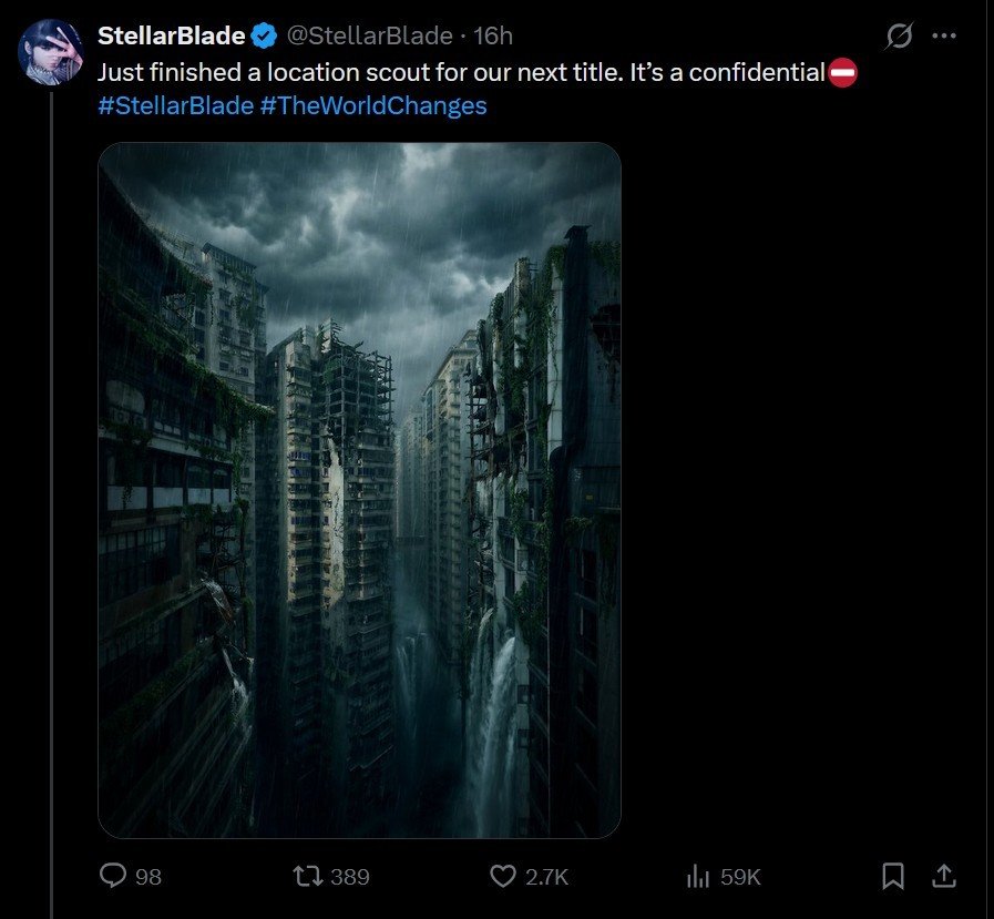 Hal tersebut dikonfirmasikan Shift Up langsung dari post sosial media terbaru mereka. Tentu saja, mengikuti kisah dari sang seri pertamanya, setting ini disulap menjadi sebuah kota post-apocalyptic yang penuh kehancuran dengan warna kusam yang lebih kental. Selain kepastian untuk memperluas lore dari apa yang sudah mereka bangun di seri pertama, Shift Up sendiri memang belum angkat bicara soal plot seperti apa yang akan ditawarkan oleh Stellar Blade 2.